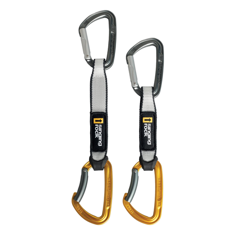 Durable full size quickdraw with solid gates and woven label to increase the SINGING ROCK logo. Intended for sport climbing routes.