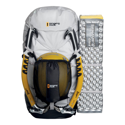 In the mountains, you need to rely… on yourself, on your partner and on your equipment. That's why we've designed ROCKALP, the lightweight mountaineering backpack for demanding conditions and terrain. Its weight and volume variability, sophisticated features and full back system make it the ideal companion for single and multi-day climbing adventures in the mountains. You'll love this pack because it was designed by climbers for climbers.